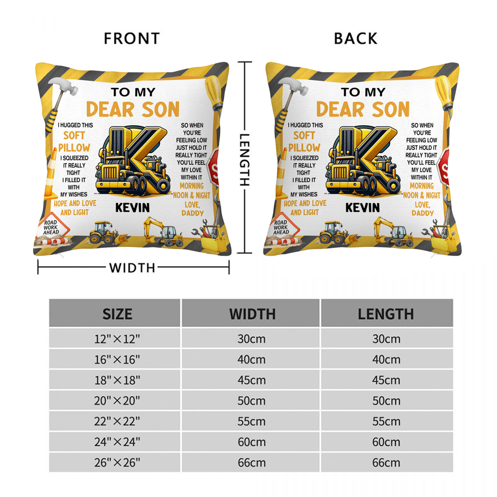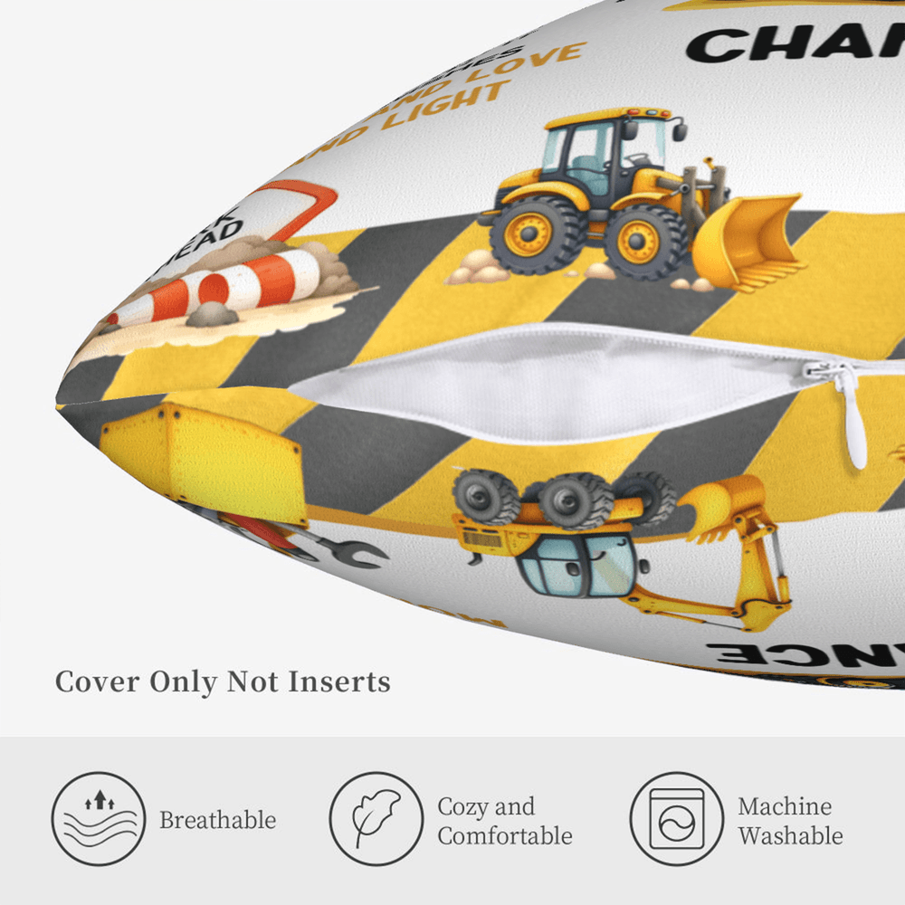 Vehículo de Construcción Personalizado Funda de Almohada Suave con Nombre Inicial y Título Decoración de Dormitorio Regalo de Cumpleaños para Niños Niños