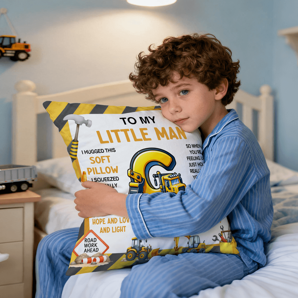 Celebre su unión con una funda de almohada personalizada de camión de construcción que habla directamente al corazón de su hijo. Centrado en una atrevida inicial personalizada transformada en una juguetona excavadora, este diseño está enmarcado. Con vívidas ilustraciones de martillos, destornilladores y señales de tráfico, crea un ambiente de obra de construcción aventurera que convierte cualquier dormitorio en un santuario de amor y ánimo.
