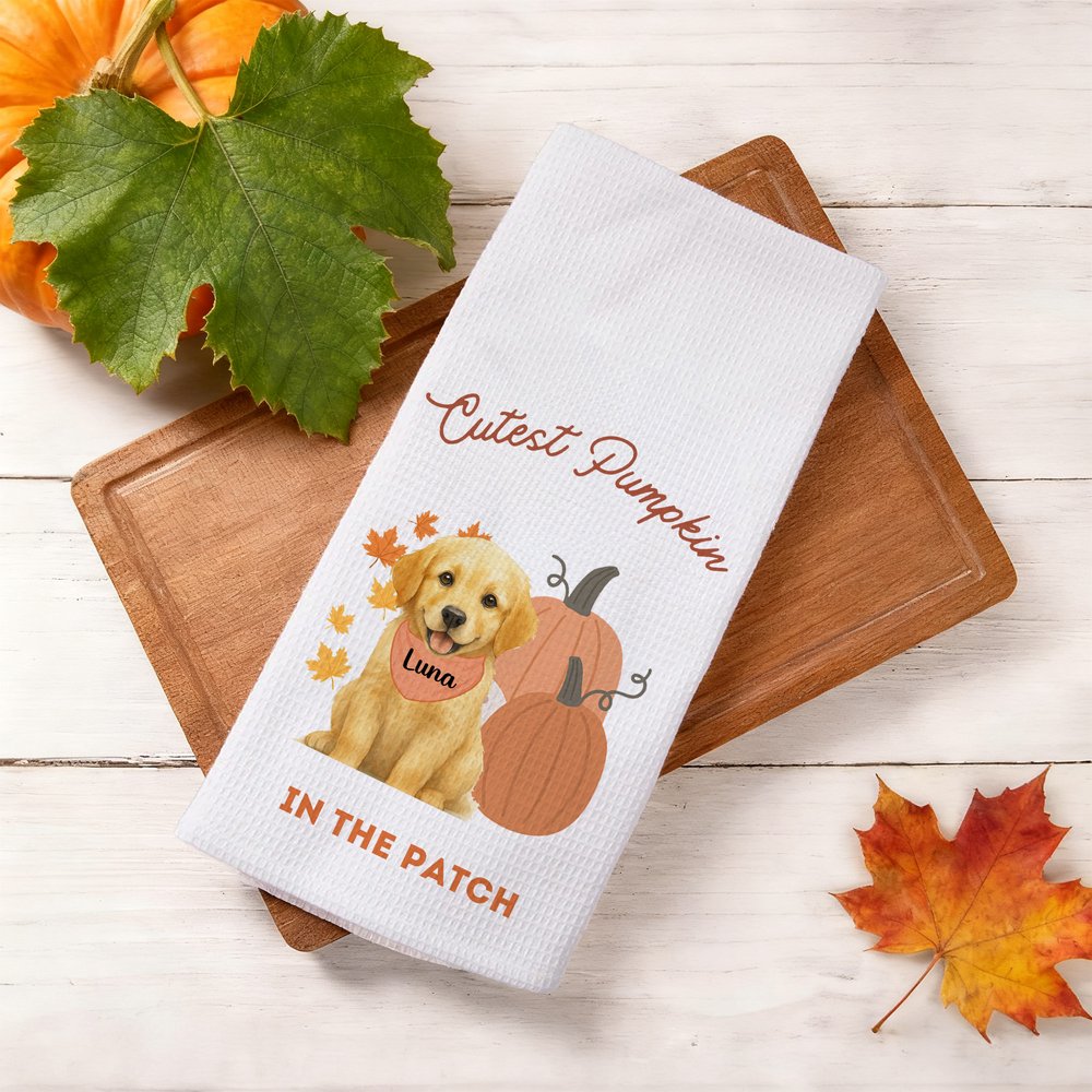 Calabaza Personalizada Foto Mascota Absorbente Suave Waffle Toalla de Té con 1-2 Nombres Otoño Cocina Decoración Halloween Acción de Gracias Regalo para los dueños de mascotas Amantes