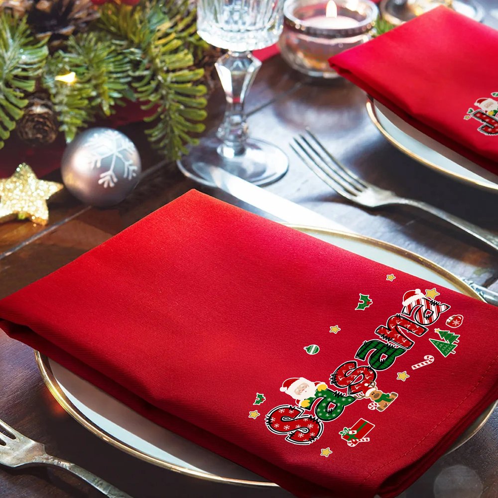 Servilleta roja personalizada de 100 % algodón con inicial de Papá Noel decoración de mesa regalo de Navidad para familia y amigos