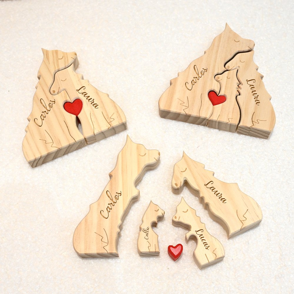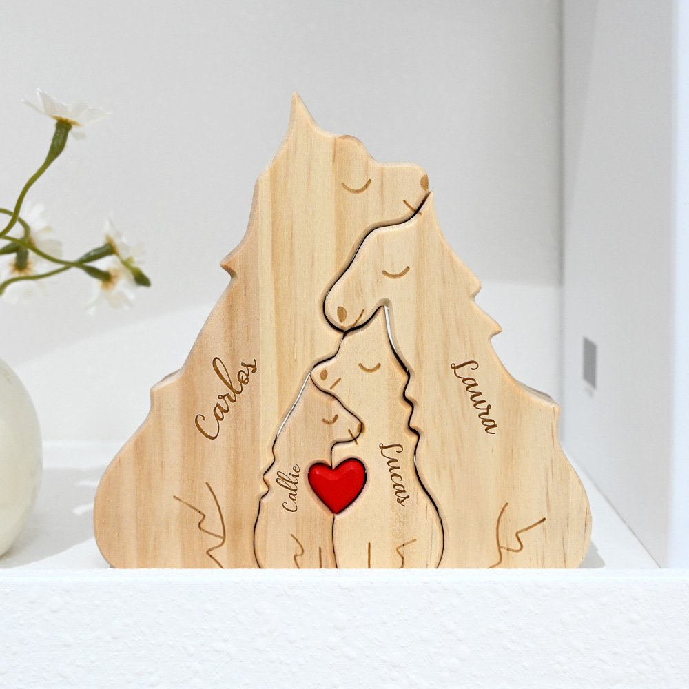 Este rompecabezas con temática familiar presenta adorables lobos. Puedes elegir entre 2 y 4 lobos, según el tamaño de tu familia. Cada lobo se puede personalizar con el nombre de un miembro de la familia, haciendo que cada pieza sea única. El patrón de corazón rojo muestra la estrecha conexión y el amor entre los miembros de la familia.